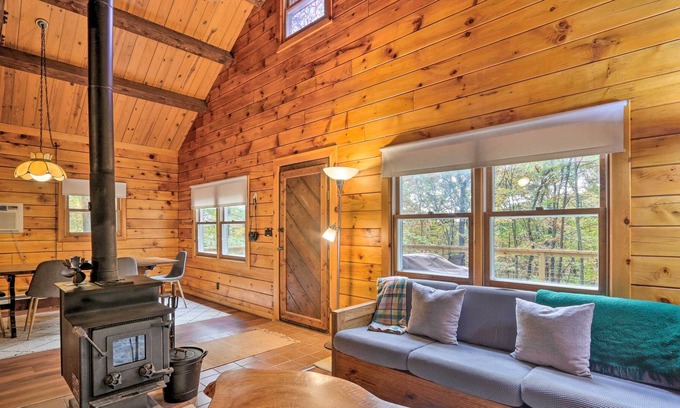 No noise, no traffic, no stress, just West Virginia Appalachia at its best! Here at this custom hand-built log cabin in Paw Paw, comfort abounds and relaxation is a given! This 2-bedroom, 1-bathroom vacation rental provides the ultimate remote escape surrounded by thick woods and endless beauty. Appreciate the rustic, one-of-a-kind exterior before stepping inside to a beautifully updated living space, complete with a wood-burning stove, chic decor, and kitchen for all your meal prep needs.