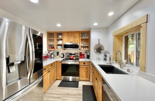 Step into a 1970s hand-built log cabin, lovingly restored to blend rustic charm with modern comfort. Nestled on nearly an acre of evergreens, this semi-private retreat invites you to relax, unwind, and reconnect.
