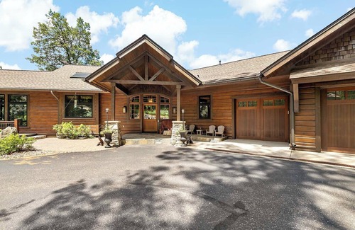 The Lakehouse is nestled on a serene point on Ossawinnamakee Lake near Crosslake, MN and the Whitefish Chain. This elegant, expansive 3-bedroom+MORE lakehouse offers a peaceful getaway. Enjoy modern amenities and rustic charm with tranquil lake views—perfect for sunbathing, swimming or boating. Relax by one of the fireplaces or on one of four decks. Play pool or find your zen in the yoga room. Watch loons in the canoe or pedal boat. (Guests should bring their own life vests, which are required by law, to ensure proper fit and safety). A strict no-pet policy ensures a pristine environment. Ideal for reunions, work and golf retreats.