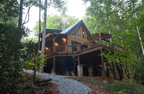 Set against a beautiful woodland back drop, Tipsy Toad cabin is the perfect vacation spot for those looking to escape from the hustle and bustle of every day life. Whether you're sipping wine at the nearby wineries, looking for a weekend getaway, or need a home base for visiting your favorite college student, Tipsy Toad in Dahlonega will provide a unique experience like no other. Enjoy your privacy, nature trails, trout fishing, or spending time together by the fire pit.