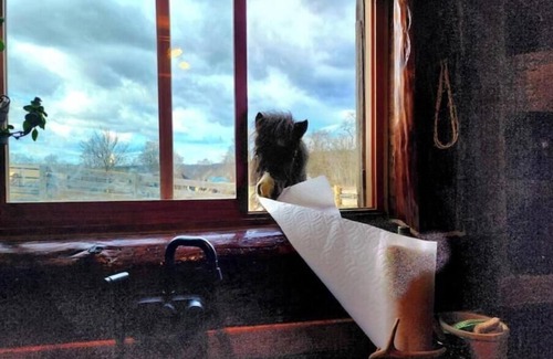 of the stone fireplace as you read by the fire in the overstuffed, leather sleeper recliner. Sip your morning coffee whilst sitting at the custom made live edge dining table and look through the interior windows at a horse in her stall munching on hay. Look out the kitchen window at a miniature horse foal as you prepare food and at night gaze out at the blanket of stars. Guests love our oversized bathroom with a view into the horse pastures, modern bathroom amemities, huge (and yes, hot) walk in shower, heated towel rack, elecrric fireplace and both historic and custom built architectural features.