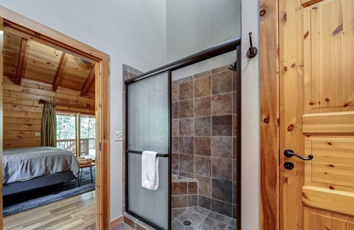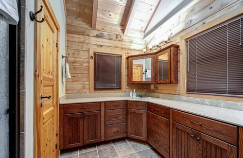 Entering this picturesque log cabin you will find soaring vaulted ceilings, tons of natural light and a fully stocked kitchen. Spacious inside and out, there is a place for everyone joining in on the fun. Off the entrance, there is a large porch, perfect for morning coffee or an evening in the fresh air. The kitchen is fully stocked, including an air fryer and a 4 door refrigerator. The main level also has a game room with the perfect space to play board games or work on a puzzle together. The game room can double as a working space when needed with a dedicated desk. The main level has two primary suites. One suite with a queen, the other with a king, large closet space and full ensuite. The lower level has two additional bedrooms, each with a queen bed and a shared full bathroom. Downstairs you will also find a drip coffee maker and Keurig. A full-sized ping pong table and wet bar make this the perfect space to get together before relaxing in the 6 person hot tub right outside.