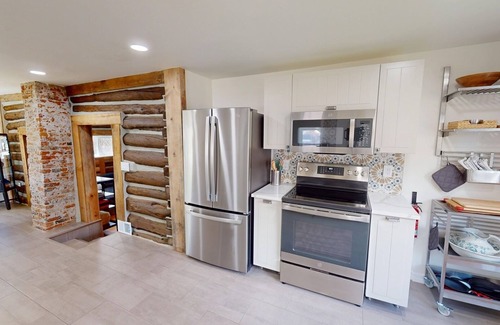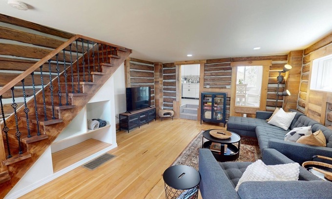 Built in 1886, our light-filled home is a true gem and an ideal mountain gateway that boasts a rustic interior, a pristine kitchen with new appliances, and a spacious patio with a grill and a fire pit. Ample privacy is provided by the towering pine tree and a row of lilac bushes. It's a piece of history lovingly restored to offer you a unique and unforgettable stay. The interior features original hardwood floors and exposed log walls that transport you to a bygone era. Experience the charm of yesteryear without sacrificing the conveniences of today.