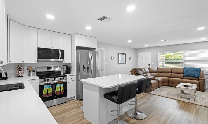 Unplug in this fully renovated home with rustic charm. Sleeps 8 with a king, queen, and two full beds. Enjoy a cozy living room, smart TV, fast Wi-Fi, and a fully equipped kitchen with coffee bar. Outdoor patio seats 8 with grill. Washer/dryer, Pack 'n Play, and driveway parking included. Minutes from Blue Spring State Park, 30 mins to Daytona or New Smyrna Beach, 40 to Orlando. Centrally located close to I-4. No pets or parties.