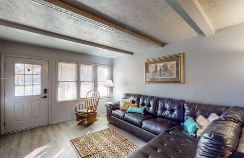 Escape to the Elkhart countryside and find peace and tranquility when you stay at this rustic retreat. A true ode to cozy southern living, appreciate the charming farmhouse decor and homey fixtures adorning each room. Lounge in the comfortable living room while tuning into a movie on the adjacent TV. Cook in the efficient kitchen, equipped with all the essentials you need. And rest easy come evening, tucked under the plush bedding in the bedrooms.