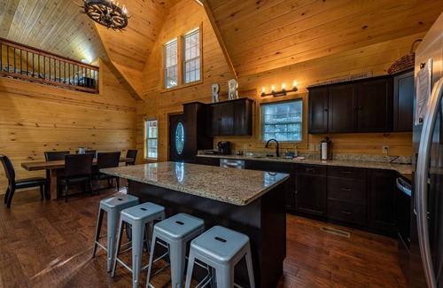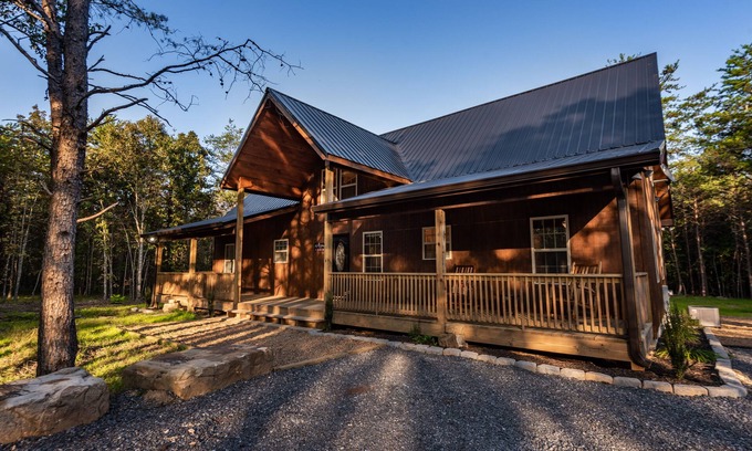 Built in 2020! Come enjoy this secluded and spacious cabin. 3 bedroom, 3 full baths with an upstairs loft with six twin beds and a full-size sleeper sofa that will accommodate a total of 14 along with an entertainment area for board games and an air hockey table. Wi-Fi available, Roku TV. On the back deck is a 6 person hot tub and when finished soaking, you can kick back and relax in the outdoor area by the fire pit.