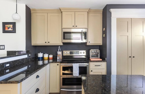 Our other standard amenities really put life in a cramped, cookie-cutter hotel room to shame: you'll have a full kitchen, laundry, fast WiFi, a smart TV, and total privacy for your stay. Our homes all feature Ring doorbell cameras and custom-coded keyless entries, so you can rest easy knowing your security is top notch. You won't be shelling out big bucks each day to park in a twisty multi-story deck either, as all of our properties have free off- or on-street parking.