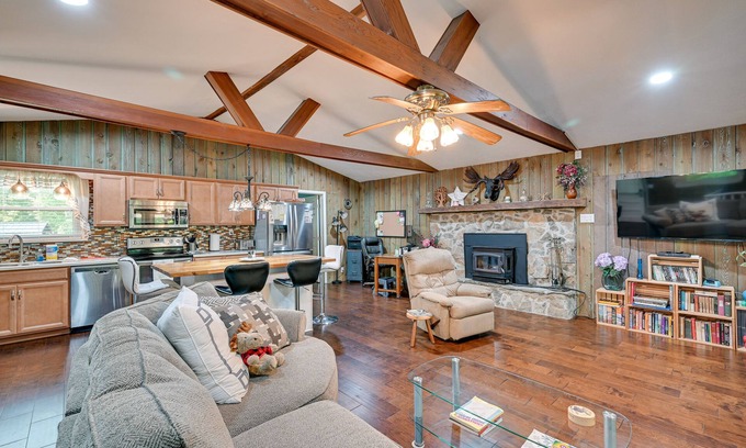 Treat yourself to the relaxing getaway you deserve and book a stay at this 3-bedroom, 2-bathroom vacation rental in Russell Springs. The home provides an open living area with a Smart TV, a fully equipped kitchen, and a spacious screened patio with forest views. Start your day with coffee and breakfast on the patio, then head out to Lake Cumberland for a day on the water! Looking to keep your feet on land? Strap on your hiking boots and hit the trails through Baugh Branch Trail.