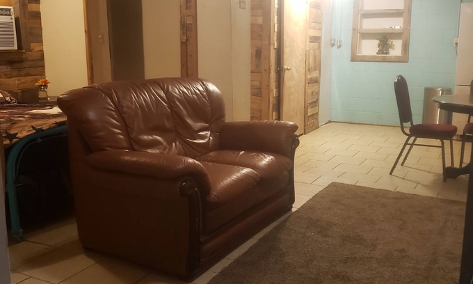 Cozy Rustic Studio Living at its Finest. Everything you need to feel comfortable in your temporary home. You will feel so at home you will not want to leave. Court Yard with BBQ Pit. Nice Romantic area.