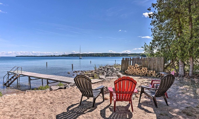 Leave your worries behind and stay at this 1-bedroom, 1-bathroom vacation rental cottage in Suttons Bay. Situated just steps from the sandy shores of Lake Michigan, this home is the ideal base for your next outdoor retreat. Spend your days swimming in the lake, playing in the sand, or exploring the best of Michigan wine country for a rejuvenating getaway! After your adventures, gather around the firepit and enjoy a night filled with stories, s'mores, and stargazing!
