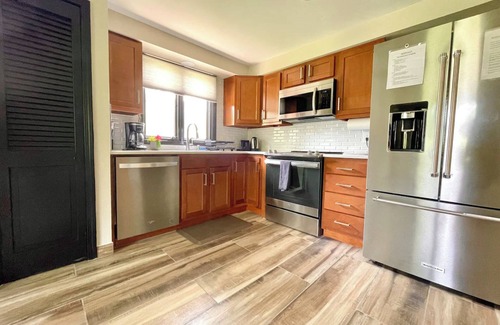 The Space: Two stories apartment with open kitchen, living space and half bath on first floor, three bedrooms with four beds and full bath on second floor. This listing is for Apartment 2 on the Left in a side by side duplex; doorway hall and on-premise parking are shared.