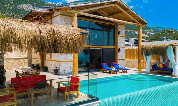 Experience luxury and romance in this stunning honeymoon villa, just 5 minutes from Kalkan. Featuring a private infinity pool, sea-view jacuzzi, elegant stone architecture, and designer outdoor living spaces — perfect for an unforgettable escape.