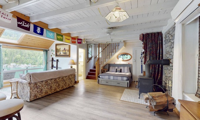 Dine with a view at the lake-facing table, or unwind on the loveseat with a good book. If you’re lucky, one of the resident eagles may make an appearance from the nearby evergreens.