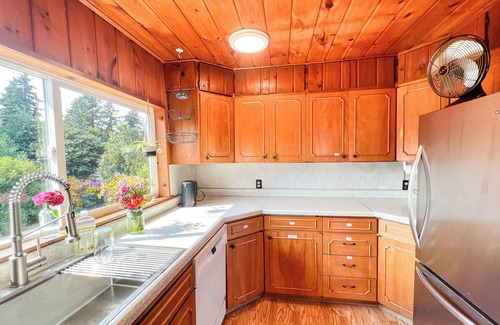 Welcome to this adorable house in Bainbridge Island. This quiet and picturesque property features 2 cozy bedrooms with a queen bed and a full bed, perfect for a small group of guests. A short walk to Pritchard Park beach, and only a 10min drive to downtown Winslow. The property is pet and family friendly, and is setup nicely for those needing a remote work space. Come and enjoy the peaceful beauty of this unique island with a relaxing stay at our abode.