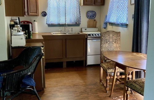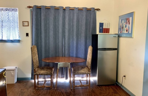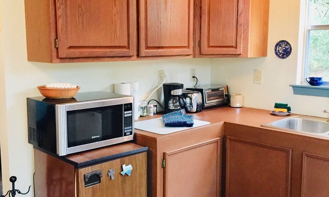 This 2 bedroom, 1 bath rustic cabin sets on 29 acres in a beautiful bucolic woodland landscape. It’s a place where sitting on the deep roomy front porch, reading a good book, writing, exploring, long walks, or relaxing and reflection take place . This property is about getting back to the simple life and unwinding from every day stress..... the cabin is nestled back in the woods, the front porch is wrapped with tiny white lights for a soft ambiance, for seating there are two anirondack rockers and a love seat on the front porch. The property offers close proximity to Brenham, Chappell Hill, Round Top and Bryan-College Station for Aggie football, art and antiques in nearby Brenham, Navasota and Round Top.. The cabin offers a mini kitchen, apartment size electric stove, small fridge, dishes, pots and pans....direct TV is located in the living room and Bedoom....the both smart TV's comes with DVR recordable movies.