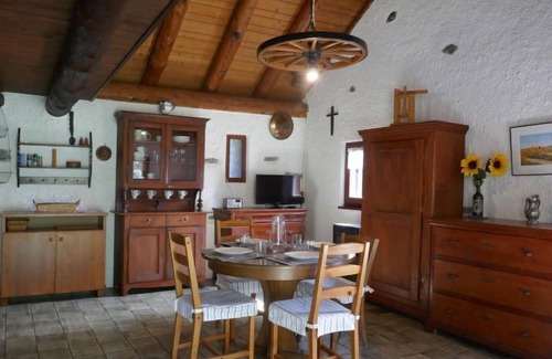 "Rustico Girasole", 1-room cottage 55 m2 on 3 levels, south-east facing position. Simple and rustic furnishings: open living/dining room with 1 sofabed, open-hearth fireplace, satellite TV, radio and gas heater. Exit to the terrace. Open kitchen (4 hot plates, oven, Gas stove) with wood-burning stove. On the lower ground floor: shower/WC. Gas heating, wood heating. Upper floor: open gallery with 2 beds (90 cm, length 210 cm), 1 double bed (1 x 160 cm, length 210 cm). Terrace. Deck chairs (3). Very beautiful panoramic view of the mountains and the valley. Facilities: Internet (WiFi). Please note: non-smokers only. Maximum 3 pets/ dogs allowed. Fire extinguisher. Instead of an enclosed bedroom, some sleeping areas are located in an open-plan area (gallery, alcove, etc.). NL-00001922