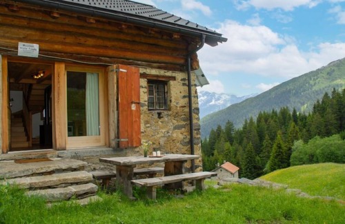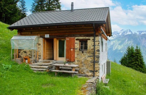 Calzanigo 40 km from Malvaglia: Beautiful, cosy house "Rustico Vista Adula", 1'603 m a.s.l from the 18th century, renovated in 2015, surrounded by trees, meadows and fields. Below Dötra, in the hamlet Calzanigo, in the district Valle di Blenio, in a quiet, sunny, elevated position on top of a hill, 10 m from the edge of the forest, in a cul-de-sac. Private: natural state property 300 m2, meadow. In the house: storage room for bicycles. 4 km long bumpy, narrow motor access to the house (mountain road). Parking (for 2 cars) on the premises. Grocery 14 km, restaurant 800 m. Walking paths from the house 10 m. Nearby attractions: Negrentino, Museo della Valle di Blenio, Castello di Seravalle, Castelli di Bellinzona UNESCO, Mercato Bellinzona (sabato), Archivio fotografico Donetta. Well-known lakes can easily be reached: Lago Luzzone, Lago Retico, Lago Ritom, Lago di Lugano, Lago Maggiore. Hiking paths: Valle di Blenio, Campo Blenio, Passi alpini. Please note: car recommended. Suitable for families. Animals in the neighbourhood. , Note: Power is supplied by a solar panel. Stove and refrigerator are gas-operated. Electrical appliances about 250W can not be operated. Ideal holiday home for nature lovers, those seeking tranquility and good for families with children. Important note: In bad weather can not be driven up to the house and the car must be parked 1km away, about 15 minutes to walk, 4x4 car recommended!!