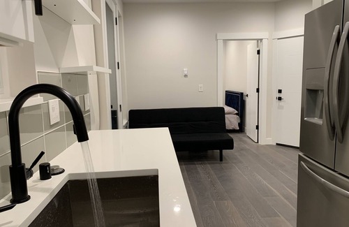 Experience luxury and flexibility at this modern retreat with incredible waterfront and mountain views. The first-floor studio can connect to the main house or function as a private apartment with its own entrance, bathroom, kitchenette, living room, and queen bedroom—ideal for friends, coworkers, or adult children.