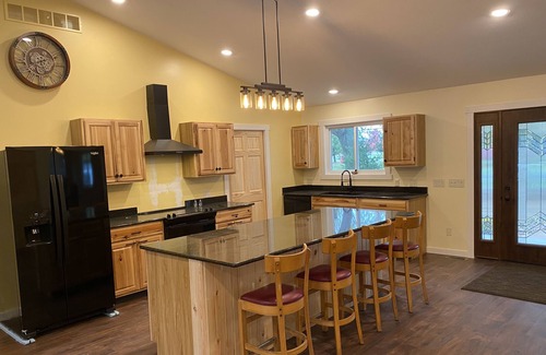 Convenient and comfortable, this handicapped accessible ranch house has everything you need for your stay. All the appliances, linens, and soaps. You only need to bring food and drink. Brand new modern.