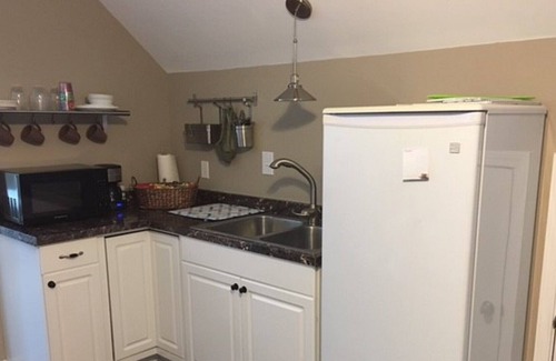 We offer a 1 bedroom - 1 bathroom studio apartment. The space has a small kitchenette with microwave, refrigerator, hot plate and dishes. Queen size bed. There is a small dining area if needed.