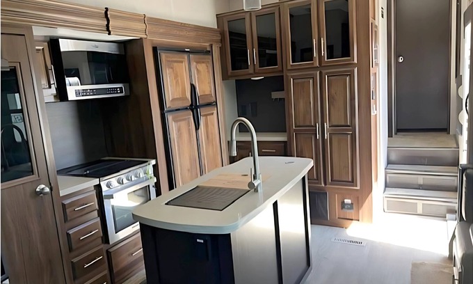 Step outside to discover to enjoy al fresco dining surrounded by the beauty of nature. Whether you're seeking adventure or tranquility, Glamping RV 5 is your gateway to a luxurious camping experience, where comfort and natural beauty come together harmoniously.