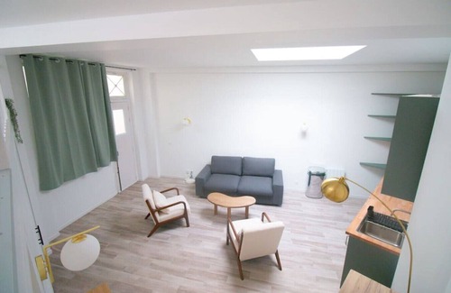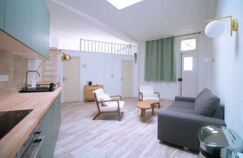 The master bedroom is furnished with a comfortable bed, guaranteeing restful nights. And for a unique experience, the mezzanine offers a breathtaking view of the sky of Paris thanks to its roof window.