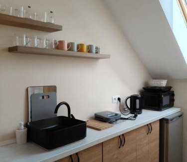 Featuring a garden, Słoneczne apartamenty Zator blisko Energylandii features accommodations in Zator. This property offers access to a terrace and free private parking. Every room comes with a balcony with garden views. At the apartment complex, every unit comes with a wardrobe, a flat-screen TV, a private bathroom, bed linen, and towels. There's also a dining area and a fully equipped kitchen with a microwave, a fridge, and kitchenware. Auschwitz is 10 miles from the apartment. John Paul II International Kraków–Balice Airport is 26 miles from the property.