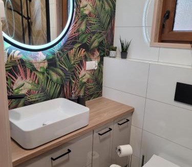 Słoneczny Domek Borsk nr 2 i 15 - nad samym jeziorem w pierwszej linii enjoys a location in Borsk, 13 miles from Kaszuby Ethnographic Park and 21 miles from Bory Tucholskie National Park. Providing a family-friendly restaurant, the property also has a private beach area and barbecue facilities. The vacation home provides rooms with air conditioning, free private parking, and free Wifi. Each unit features a terrace, a fully equipped kitchen with a dishwasher, a dining area, and a flat-screen TV, while the private bathroom includes a shower and a hair dryer. An oven, a fridge, and stovetop are also featured, as well as a coffee machine and a kettle. At the vacation home, all units have bed linen and towels. For guests with children, the vacation home offers a children's playground. If you'd like to discover the area, hiking is possible in the surrounding area. Upside-down house is 26 miles from Słoneczny Domek Borsk nr 2 i 15 - nad samym jeziorem w pierwszej linii. Gdańsk Lech Wałęsa Airport is 45 miles away.