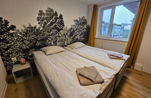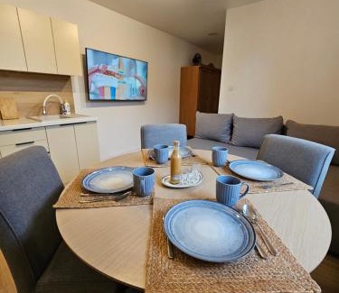 Słony Karmel Ciechocinek - minisanatorium, masaże, kosmetyczka, inhalacje 32 metry od tężni CAŁY NA WYŁĄCZNOŚĆ offers accommodations in Ciechocinek, 12 miles from Central Torun Railway Station and 13 miles from Atrium Copernicus Shopping Center. This property offers access to a terrace, free private parking, and free Wifi. The property features barbecue facilities and outdoor furniture. This vacation home includes 2 bedrooms, a living room and a flat-screen TV, an equipped kitchen with a dining area, and 1 bathroom with a shower and a washing machine. Towels and bed linen are available in the vacation home. This vacation home is allergy-free and non-smoking. Toruń Wschodni Railway Station is 13 miles from the vacation home, while Bulwar Filadelfijski Promenade is 14 miles from the property. The nearest airport is Bydgoszcz Ignacy Jan Paderewski, 47 miles from Słony Karmel Ciechocinek - minisanatorium, masaże, kosmetyczka, inhalacje 32 metry od tężni CAŁY NA WYŁĄCZNOŚĆ, and the property offers a paid airport shuttle service.
