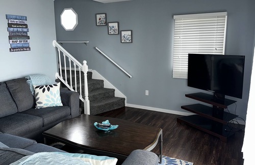 The home features two first-floor living rooms and a well-stocked kitchen, complete with cooking supplies for all your culinary needs. Step outside and enjoy 100 feet of private beach, perfect for swimming, kayaking, and campfires. And if you're looking for some fun activities, you'll find yard games, board games, a pack and play, and a high chair to keep everyone entertained.