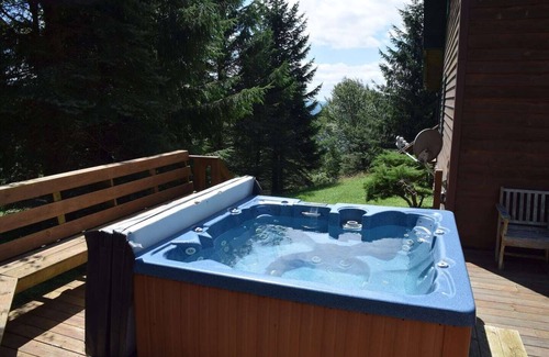 The hot tub accommodates six adults, and has peak views of the Allegheny Mountains from a private deck.
