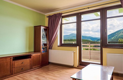 Cosy apartment block "Sachrův Kopec", 5 storeys. On the outskirts, 2 km from the centre of Harrachov, in a secluded, quiet, sunny position, along the wooded area, 2 km from the skiing area. For shared use: property. Fireplace, children's playground. In the house: lift, central heating system. Single garage. Shop 1 km, restaurant 800 m, bus stop "Harrachov, Nový Svět, u Motejlků" 1 km, railway station "Harrachov, Mýtiny" 2.3 km, outdoor swimming pool 3 km. Golf course (9 hole) 2 km, tennis 3 km, walking paths from the house 10 m, cycle lane 100 m, ski lift 2 km, ski rental 2 km, ski bus stop 200 m, ski school 2 km, cross country ski track 300 m. Nearby attractions: Bobová dráha, Anenské údolí 1 km, Muzeum skla 1km,Karpacz (Pl) 39 km, Skokanské můstky, Šindelka 3 km, Mumlavský vodopád 4 km, Jizerka 10 km, Giganteria Piechowice(Pl) 23 km, Běžecký lyžařský areál Jakuszyce(Pl) 5 km. Well-known ski regions can easily be reached: Harrachov 2 km, Příchovice, Rejdice 9 km, Paseky nad Jizerou, Rokytnice n. Jizerou 15 km. Hiking paths: Harrachova cesta, Krakonošova cesta, Vodní nádrž Souš 12 km, Zoo Liberec, Aquapark Babylon Liberec 35 km. The owner does not accept any youth groups. The keys‘ handover takes place by the agency Interhome Harrachov. HARRACHOV CARD guest card included in the price.