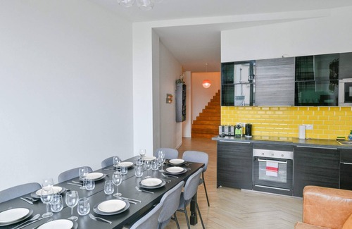 Welcome to this 155m2, spacious and bright flat, next to the emblematic center of Montmartre, an ideal spot for art and culture lovers, containing some of the most emblematic monuments and museums of the city. Just a few minutes away from Picasso's studio and the beautiful Sacré-Cœur basilica (7 min. walk). Taste Parisian nightlife with cabaret at the Moulin Rouge (10 min). Hip restaurants and bars are everywhere, and the Abbesses metro station is within a 4-minute walk.