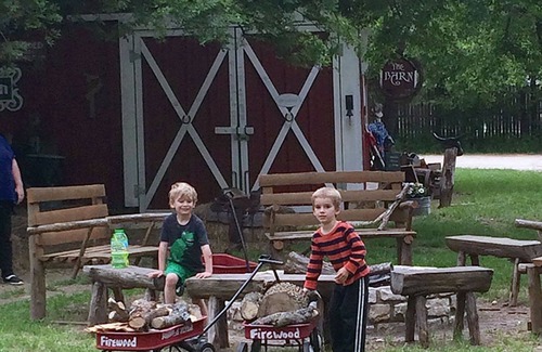 Cabin with 1 bedroom with 2 full beds, small living area, full kitchen, bathroom. Campfire circle. Cook out grill. Hammock, Private porch. Next to Barnyard. Overlooks the river and the meadow. WiFi. Flat Screen/DVD. Sleeps 4. Enjoy our wonderful petting area of barnyard friends!