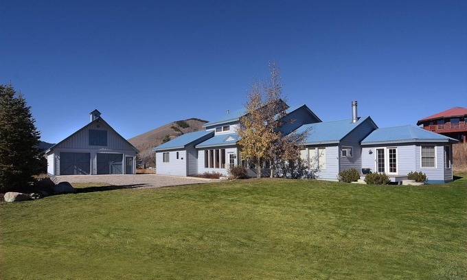 Entering this home brings you into the largest mud room we've ever seen. With a brick paver floor and seating for putting on your boots, be they ski, hiking, or your favorite pair of cowboy boots. It's a great place to store all of your gear whatever the season. Open the french doors into the great room where the living, kitchen, and dining are all combined so the whole family is a part of the action. This home lives all on one level other than 2 bedrooms and a bathroom upstairs making it perfect for the family that doesn't like stairs. The living room has plenty of seating and boasts a river rock wall with wood burning fireplace and flat panel TV. The granite and stainless kitchen is fully stocked and open to the great room so nobody misses out on a great story. The dining room table expands to seat 10 and is surrounded by windows offering a great view of Mt. Crested Butte. There are two decks outside with a gas grill and outdoor dining. They also offer a great place to sit and enjoy a beverage as the kids play in the yard or sit in the oversized hot tub at the end of the day and soak your cares away!