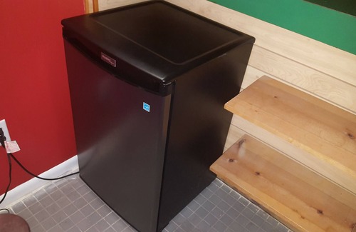 *There is no kitchen, but the kitchenette has a compact fridge (probably 3 or 4 cu. ft. with no freezer), a microwave, a 3-in-1 coffeemaker, toaster oven and hot plate, and a hot/cold water dispenser. There is no running water there...just the sink in the bathroom...more than enough if you tend to eat out and just want to warm food or make a breakfast from time to time, but if you like to cook for real, the small space and lack of amenities would be frustrating.