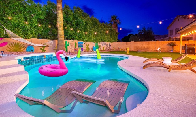Saguaro Spa Retreat: Heated Pool, Spa, Golf, Pool Table, Massage Chair,Sleeps 14 has 5 Bedrooms , 3 Bathrooms, and max occupancy of 14 people. The minimum rental for this property is 1 nights, but this can change depending on the season you plan on staying. Previous guests have rated it 2, and VRBO labeled it a top-rated House because of the excellent services rendered by the owner or manager of this House, and has consistently provided great experiences for their guests. Most families or guests that use it recommend it to their friends and some of them are repeat guests. House has a friendly neighborhood, and the East Mesa has interesting places to visit. If you want to learn more about the House in East Mesa, such as places to visit and things to do nearby, you can check below to learn more.