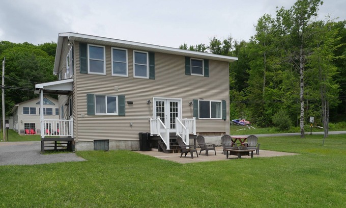 This vast lakefront camp with a private dock and access to homeowners' private beach and boat launch a stone's throw away. The camp sleeps 7 people 2 common areas with TVs and a full kitchen with everything needed including a dishwasher. Nice yard and porch area with fire pit and plenty of room to enjoy the views. We provide WiFi, and TVs and provide all linens and bedding and a large parking area. Everything you could want to have an amazing time in the Adirondacks.