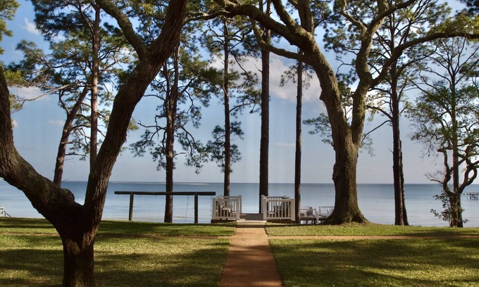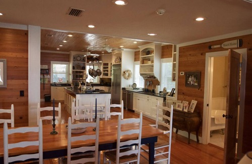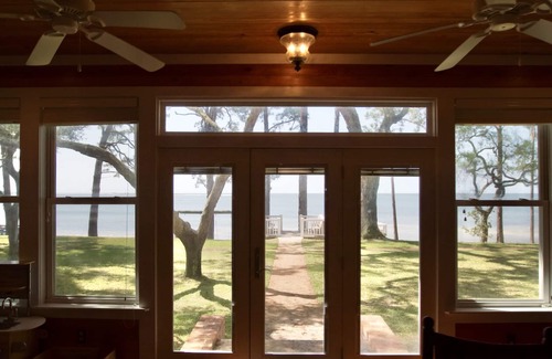 This beautifully renovated late 19th century beach house is located on the highest elevation of Old Saint Teresa beach looking out over sprawling views of the Gulf of Mexico. This exclusive 3 mile stretch of beach is the last of its kind in Florida. With ease of privacy and safety, one can let their children roam and explore the nature that surrounds. Do not be surprised to see the occasional jumping mullet, swimming porpoises or the infamous white squirrel. This 3000 sqft 3 bedroom 3 bathroom house is thoughtfully appointed with the latest luxury amenities. There are 7 beds in total. The master suite has king sized bed, dresser with TV/dvd player. The master bath has a claw tub, vanity as well as a large shower which features a Rinnai water heater for the entire house. The upstairs features two large bedrooms and two large baths. Bedroom 1 has a king sized bed, dresser, TV/dvd, ocean view, vanity, and a large shower. Bedroom 2 has a large king sized bed, two twin beds, TV/dvd, claw tub, shower and vanity. An outside sundeck located on the second floor directly above the front porch allows for a different perspective of the beautiful views. A well thought out kitchen is appointed with a gas powered Viking range stove, Kitchen Aid inset refrigerator, Kitchen Aid Oven with microwave/convection oven, toaster oven, coffee pot, two dishwashers, a second refrigerator and freezer in the pantry for extra storage. A large custom dining table with accommodation for 10 as well as kitchen counter table top seating for 4. Nice Air conditioned front porch has more sitting area with plenty of rocking chairs to enjoy the view which overlooks the beach and the Gulf . The porch also features a day bed with a trundle as well as a queen sized bed on the other end. The living area has plenty of seating with a large sofa, rocking chair, love seat and big oversized lounge chair and is complete with a smart tv/dvd. There is a carport with a joining screened in grill room to cook your fresh catch of the day. A bluff top seating deck located in front of the house connects to a second deck on the beach via a lifted winding walkway.