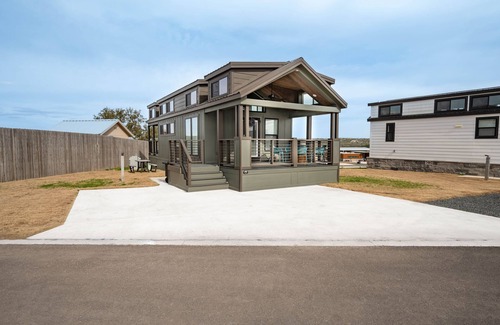 Escape to serene country living at Salento Tiny Haus in Fredericksburg, TX. You’ll love this beautiful little home with fantastic outdoor front and back porches! Our cute home is the perfect retreat for families or groups, including pets, looking to experience everything this vibrant city has to offer. Leave your worries behind, grab a drink and relax by the fire pit and enjoy the stunning sunset in the back porch. Dine al fresco at the outdoor dining table or cozy up on the Adirondack chairs to watch the beautiful Texan sky. Our home comfortably accommodates up to 4 guests in two sleeping areas: a spacious open loft upstairs with a King-size bed and Queen-size bed on the main room. The main room features an ensuite bathroom with a generous shower, equipped with a delightful rain shower head, and a vanity offering space for your essentials. The bathroom also connects to the living space. Our home is small but spacious with a unique style. An open concept main space, with a cozy sleeper sectional, is perfect to sit and relax while watching movies or sip a glass of wine in front of the electric fireplace. In addition, a dual-purpose table set with built-in power outlet and USB ports can be used to dine in or as a workstation. The fully equipped kitchen makes cooking a breeze! Included is an electric range with an oven, microwave, Keurig coffee maker, Salton air fryer/ toaster/ oven, dishwasher, instant pot and all your cooking and dining essentials. Other amenities include a Solo stove fire pit, picnic table on the grass, seating in the front / back porches and free Wi-Fi. Salento Tiny Haus includes access to resort-style swimming pool, clubhouse that has restroom suites, laundry facilities, and more! Get away for a solo trip or plan a fun trip with your family and friends. This dog-friendly home is exactly what you need for a relaxing getaway in the Texas hill country. This property has a perfect neighbor unit 192 for those looking to bring family or friends along for a stay. *Owner has installed security camera in the front porch for your safety.