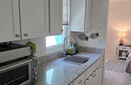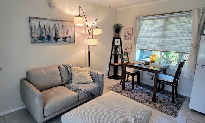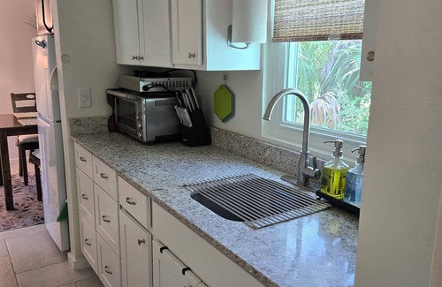 Unwind at this delightful, newly remodeled coastal cottage. This brilliant one-bedroom retreat offers a spacious bedroom with a king bed for your sleeping comfort. The bathroom features a large shower area, and is fully equipped with a hair dryer, toiletries, and all the essentials you'll need for a stress free stay. The kitchenette includes a refrigerator/freezer, toaster oven, microwave and a single induction cooktop, as well as an electric kettle and a coffeemaker with fresh coffee and tea options. Our little place will be an excellent home base while you enjoy unlimited opportunities for fishing, hiking, biking, bird watching, beach going, golfing and more in our beautiful little village of Panacea.