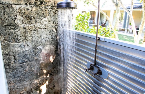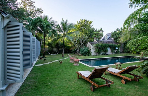We are pleased to offer you a truly whimsical treasure. Salt Box is an enchanting and quaint village home that has been tastefully renovated but still maintains its old style charm. There is a romantic covered outdoor living area that flows to a large walled backyard for privacy as well as garden entertaining. The main cottage has 3 air conditioned bedrooms, 2 on the main floor and an ensuite master bedroom suite upstairs. The cottage has 2 air conditioned bedrooms with a shared bathroom and outdoor shower. A large salt water swimming pool ties the two cottages together. The old style kitchen is equipped with fridge, stove, cooking utensils with a historic fireplace backdrop original from circa 1820. There are various lounging spaces which including the cozy indoor living room and the calm outdoor living room perfect for reading or having small dinner parties. The guest cottage has a small outdoor living room and outdoor eating area to have all your meals under cover overlooking the pool. There is a small BBQ made from repurposed stones from the vintage home where you can cook and sit under the trees.