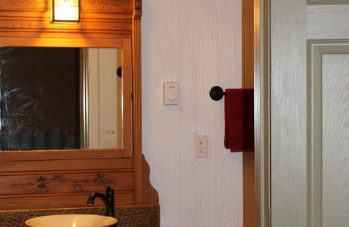 The bedroom is equipped with one queen sized bed and one twin bed which makes this cottage the perfect fit to sleep two to three guest. The bathing area features a extra large shower with double heads and a beautiful Victorian dresser re-purposed as a vanity. The Salt and Pepper Shaker Museum is wheelchair/handicap friendly for all to enjoy. For more info visit fiddlestix village dot com.