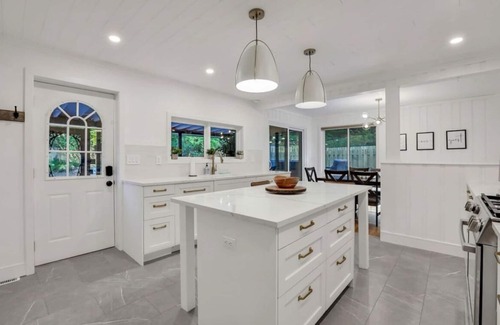 Modern 3-bedroom home perfect for up to 8 guests. Enjoy a saltwater heated pool, spacious patio, and cozy living room with a fireplace. The finished basement features games and a daybed that converts into a queen bed. The fully equipped kitchen and dining room make it easy to dine in. Located near local wineries, ski resorts, hiking trails, Cascade Lake, Legoland, and the Renaissance Faire. No pets allowed.
