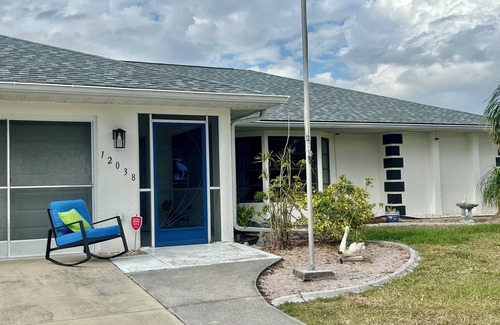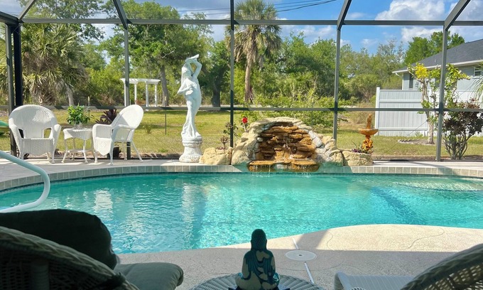 Hello and welcome to our Lemon Haven Retreat Suite! This modern upgraded private suite area comes complete with private entrance, two private bedrooms both with TV, AC, ceiling fans and ample storage space. The full private bath leads you out to our beautiful lanai oasis and out door kitchen. Our out door kitchen contains refrigerator, hot water kettle, coffee pot, air fryer, grill and kitchen necessities. Swim in the salt water pool or soak in the jacuzzi. The lanai is set up for your privacy for when we are home and not enjoying the pool ourselves (we are not there often.) Interaction with us should be minimal to no interaction at all. Your portion of the home is completely private. You’ll love the peaceful neighborhood where you can take a walk or a short drive to beautiful parks and beaches (Englewood Beach 15 min. drive, Don Pedro and Myakka State Parks both a 15 min. drive and Gasparilla Island a 20 min. drive) as well as great bars, restaurants and golf courses. We know you’ll enjoy a wonderful time here at our retreat style home and we look forward to hosting you!