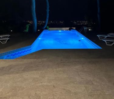 Providing a garden, Samos View Villa provides accommodations in Kuşadası. This property offers access to a terrace, free private parking, and free Wifi. Mountain views are a highlight at the villa's pool. The air-conditioned villa is composed of 4 separate bedrooms, a living room, a fully equipped kitchen with a dishwasher and oven, and 4 bathrooms. Guests can enjoy a meal on an outdoor dining area while overlooking the sea views. There's also a seating area and a fireplace. Kusadasi Marina is 10 miles from Samos View Villa, while Church of Mary is 20 miles away. Izmir Adnan Menderes Airport is 61 miles from the property.