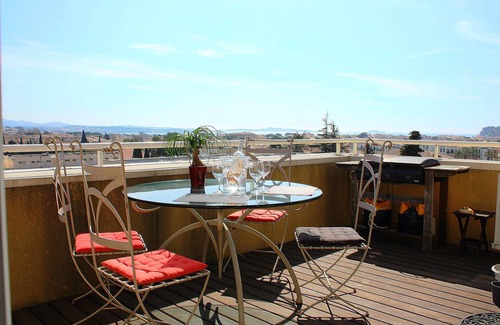 Sea view. Beautiful 15 m² terrace shaded by an electric blind, gas barbecue available.