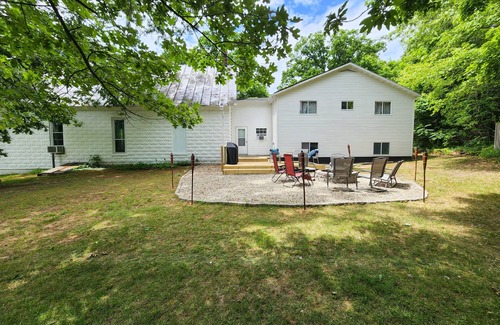 Inside, the main hall has been transformed into a spacious and welcoming living area, complete with comfortable seating, a large projector TV, a pool table, and ping-pong table, and many other board games for endless entertainment. Enjoy the secluded outdoor area or soak in our 7-person hot tub featuring powerful jets and comfortable seating. The fully equipped kitchen boasts all the amenities you'll need to whip up a delicious meal and don't forget about the grill outside for warm summer evenings. The property features four comfortable bedrooms with extra sleeping space on the fold-out couch in the main living area. The property also offers one and a half bathrooms. Outside, the property offers a large outdoor deck, perfect for enjoying the beautiful Michigan weather and hosting memorable gatherings. A large fire pit is also available for cozy nights under the stars, perfect for making smores with family and friends. Whether you're looking for a peaceful retreat or a fun-filled getaway, this unique church-turned-vacation rental has everything you need for an unforgettable stay. Come experience the magic of this special place and create memories that will last a lifetime!