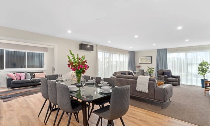 Sanctuary on the Grove is a newly built and exceptionally furnished home in a peaceful and handy location of Nukuhau, Taupo. This spacious home has been well thought out to make your stay a part of your Taupo experience one that will be stored in the memory bank for a long time to come. Whether you're enjoying a holiday with friends and family, a group of friends getting together for a long overdue catch up or here for work, this stunning property has it all.
