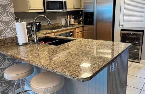 This property features not only a sauna in the master bedroom but a King-size bed in the master and a queen in the guest bedroom, one bed being the adjustable Tempurpedic split king and the other a comfy bed in the box type, kitchen is also furnished with high-end appliances for all of your cookings needs.